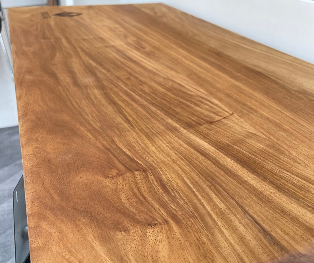 African Mahogany (a Khaya Nyasica species) is native to Tropical Africa, it was first discovered in Singapore back in the late 1970s. One can often find this wood in premium furnitures and cabinets due to its high quality. Using it as a top table is a great choice because the wood displays elegance with its reddish brown wooden color and pretty interlocked grains