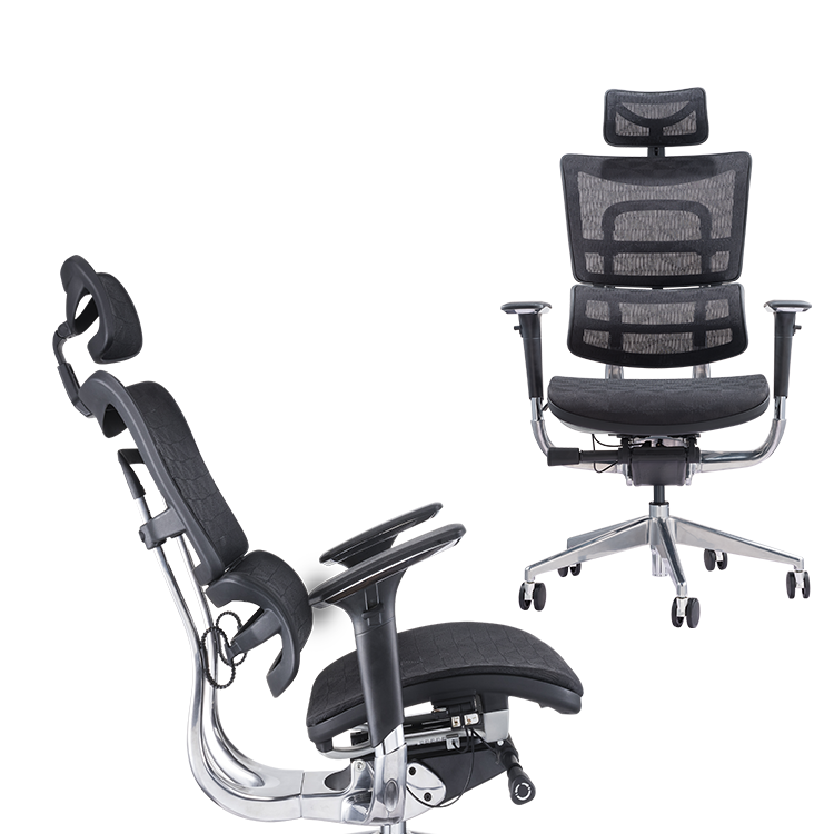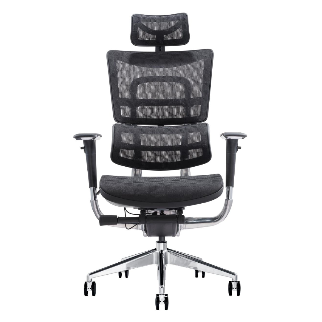 Introducing the “ErgoFlex” Ergonomic Chair, the next level of comfort and support in the world of office seating. With its fully aluminum chrome frame structure, the ErgoFlex chair is not only sturdy and durable but also adds a touch of sophistication to your workspace.